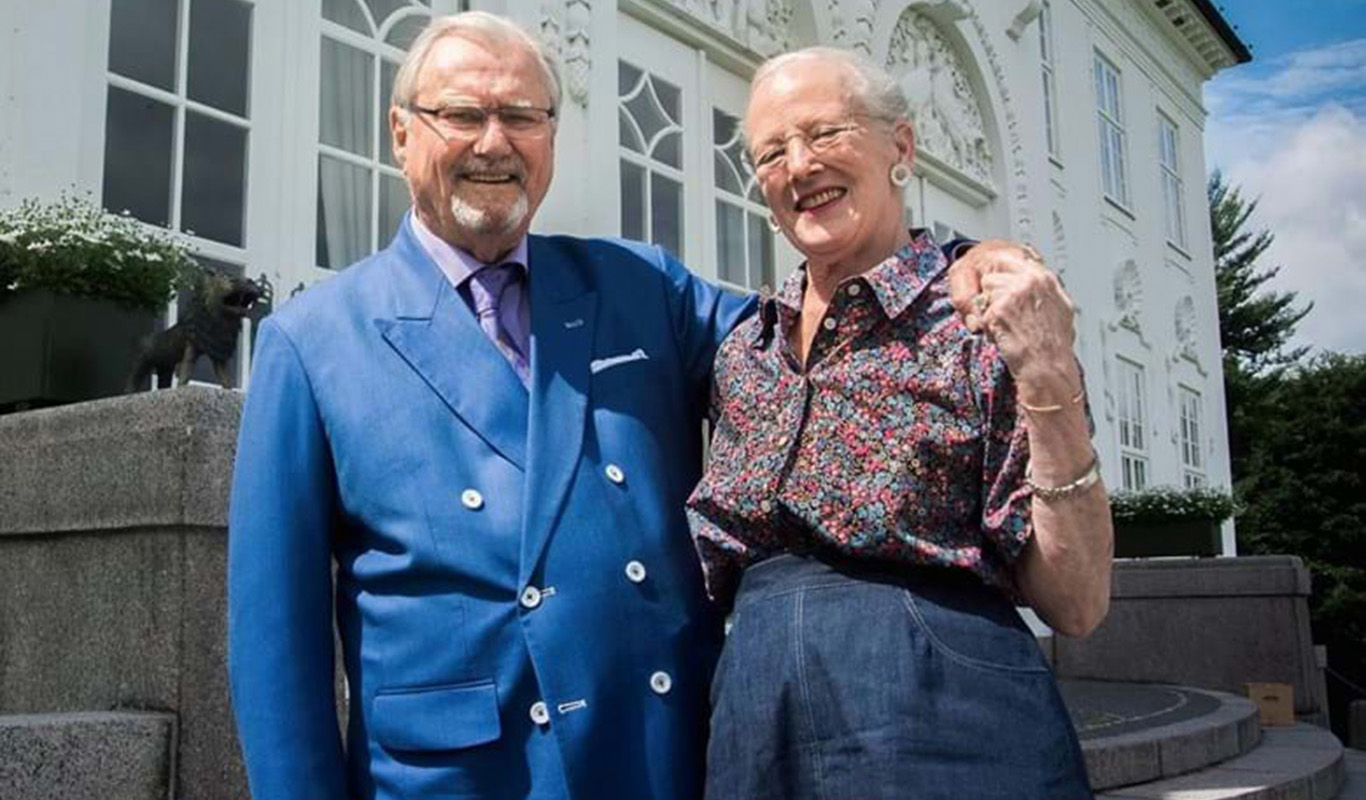 På trappen til Marselisborg slot ses hendes kgl. højhed dronning Margrethe og prins Henrik, som fik Morten Korch rosen plantet i deres hyggekrog på deres sommerslot i Aarhus.